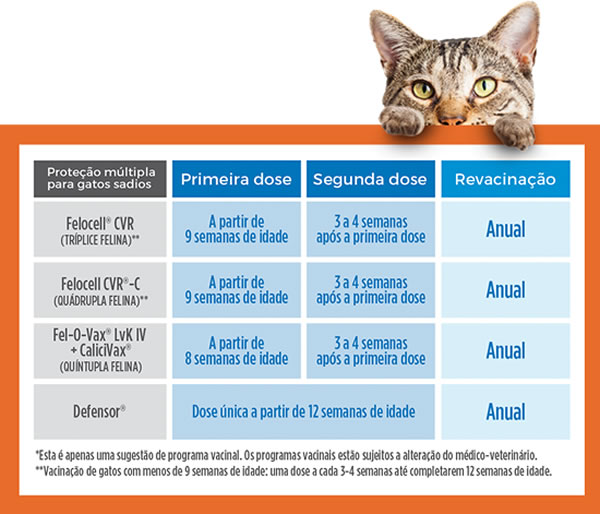 Veja ao lado a Tabela de vacinação para Gatos